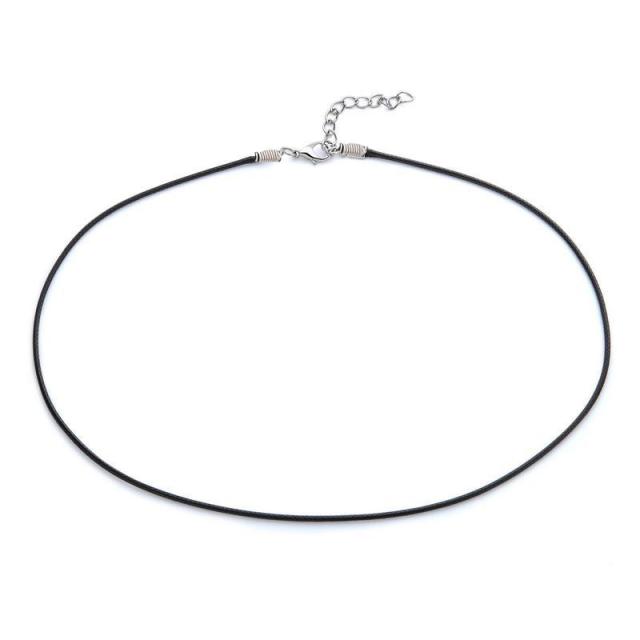 黒色の細い1.5mmの太さのシンプルなレザー風のネックレスチョーカー。シンプル綺麗にコーデできるおしゃれな首飾り。どんなスタイルにもマッチしてくれる男性からも女性からも人気のネックレス。