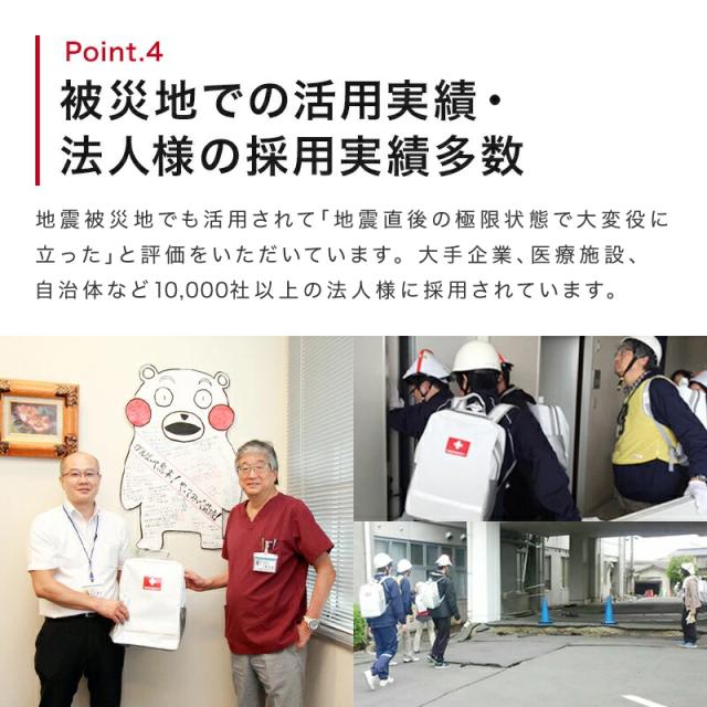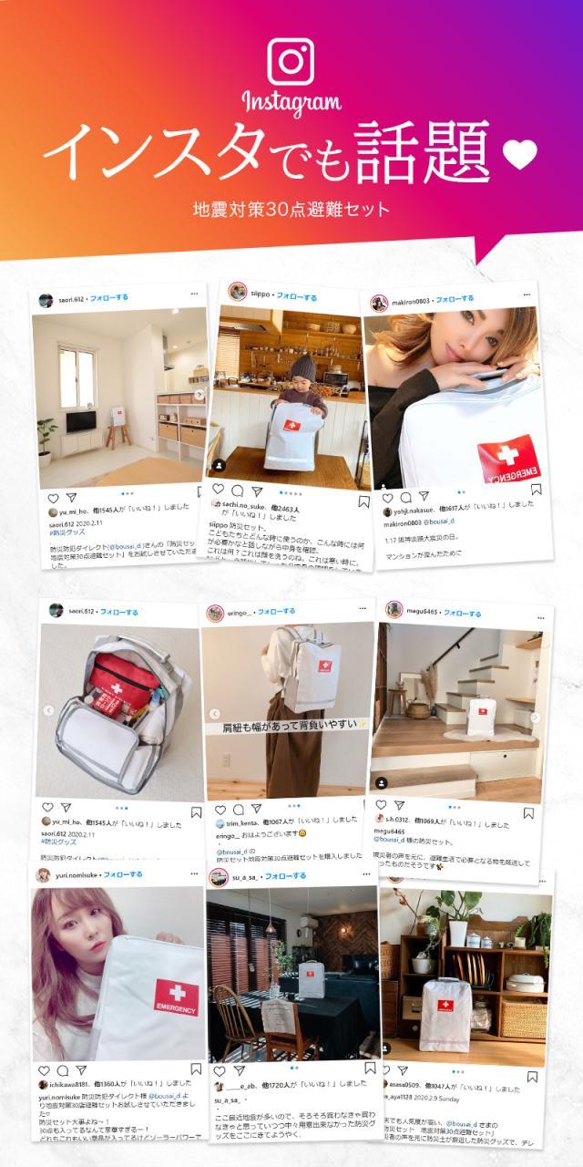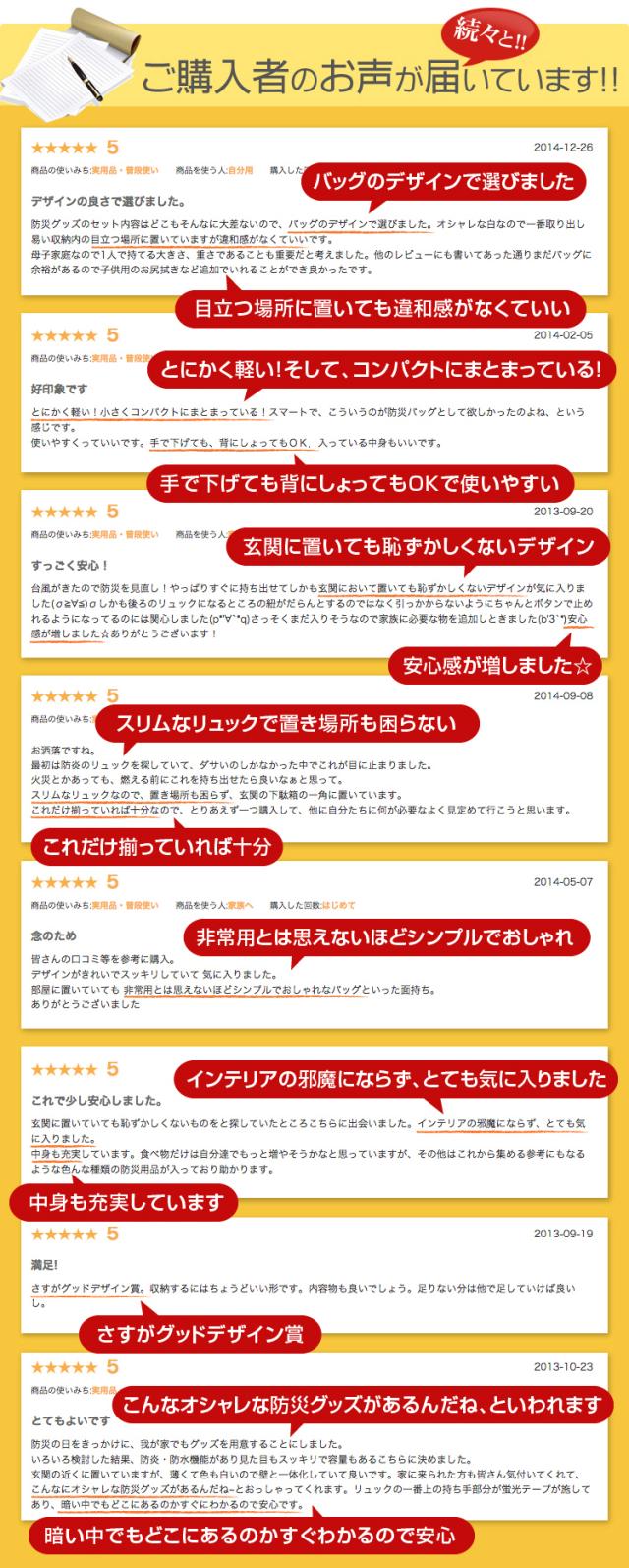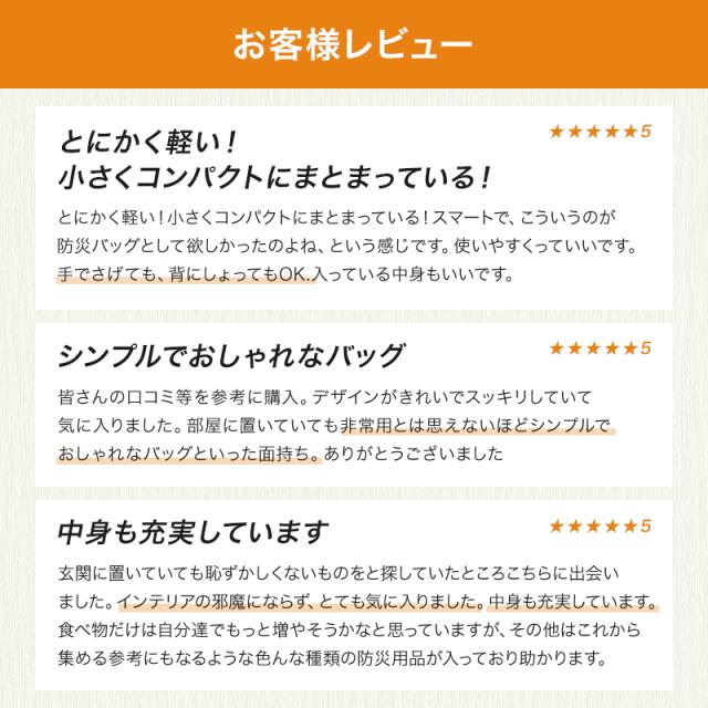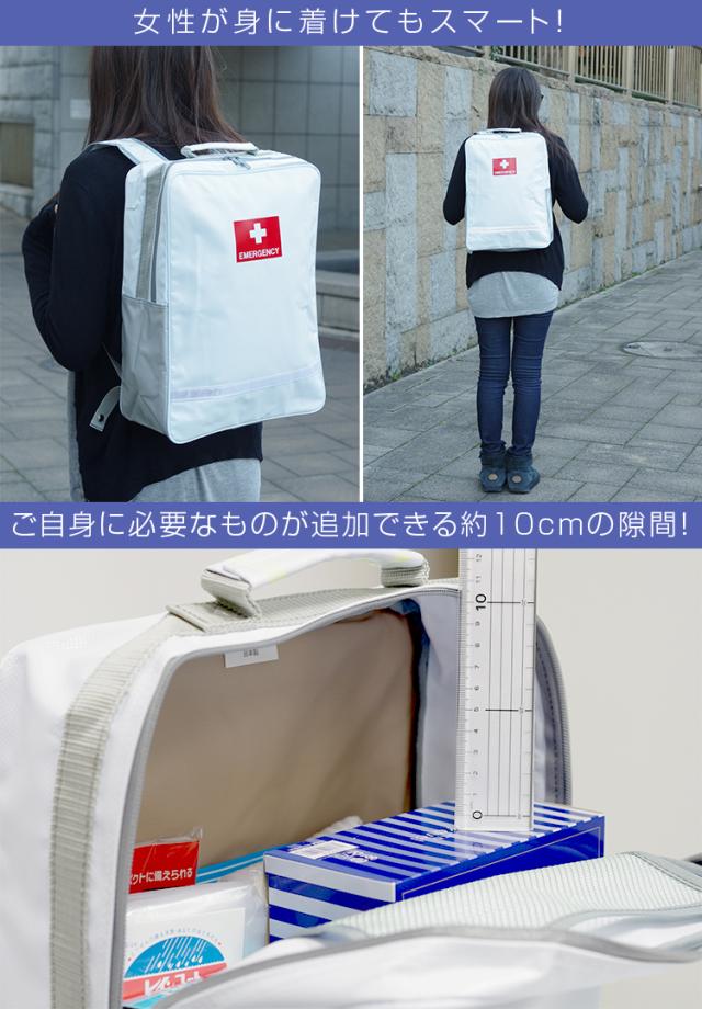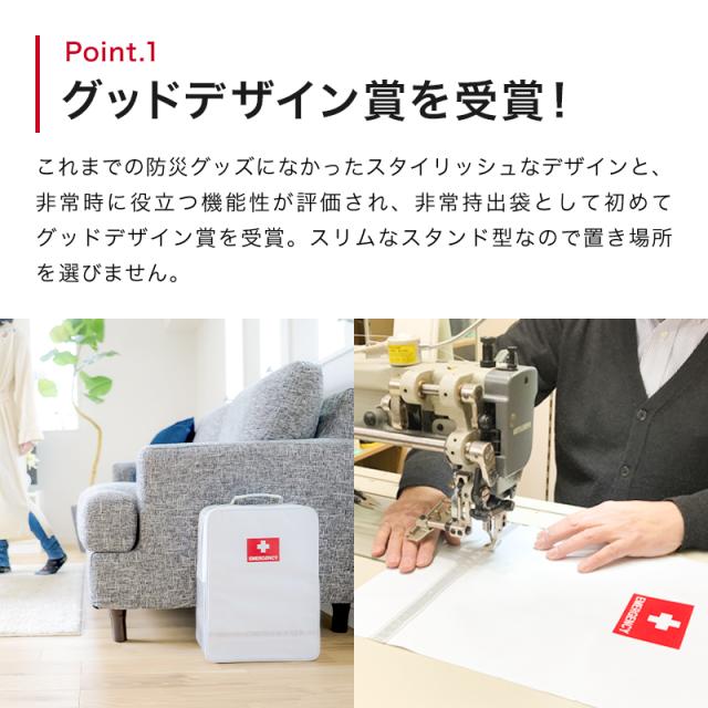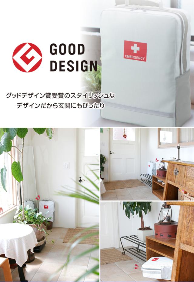 - 最近地震が多いので、非常時の時のために購入しました。スタイリッシュなデザインなので、インテリアにも馴染みやすく、中身も充実しているのでありがたいです。