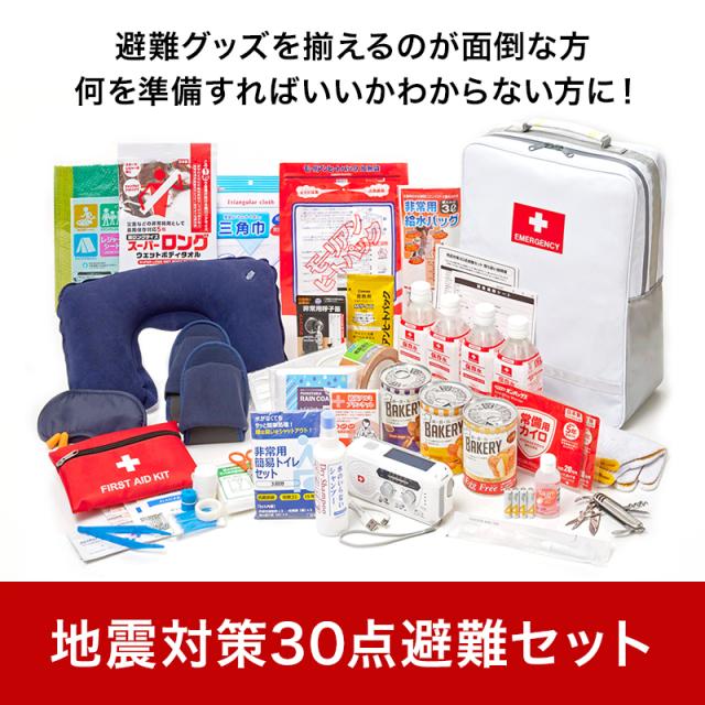 防災セット 地震対策30点避難セット 防災グッズ 防災バッグ 災害対策 防災用品 保存食 保存水 簡易トイレ 非常用トイレ ブランケット