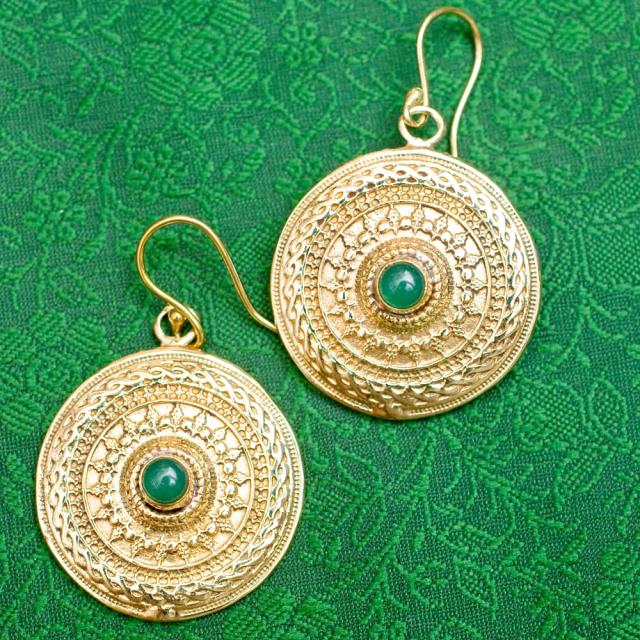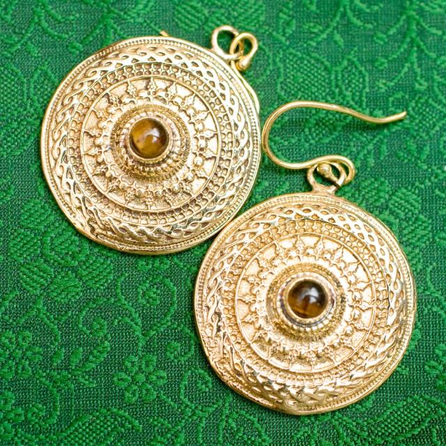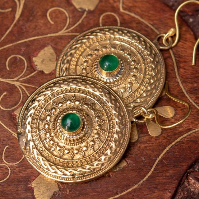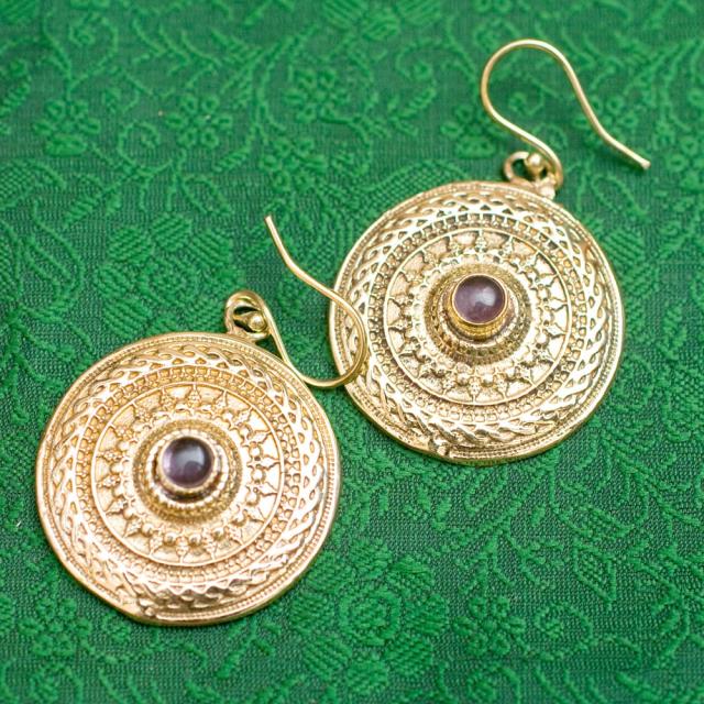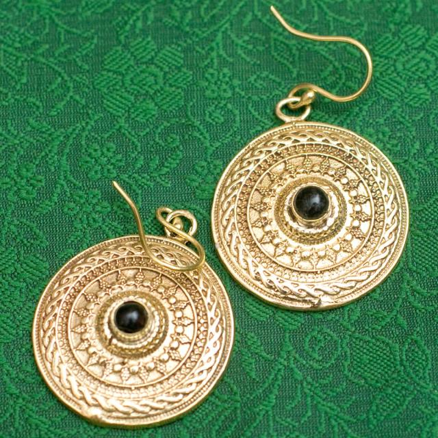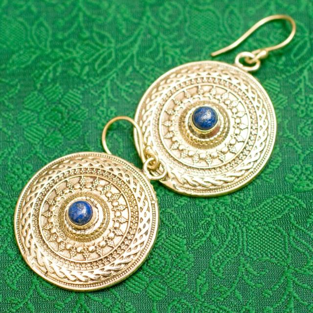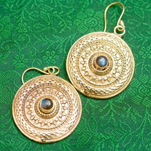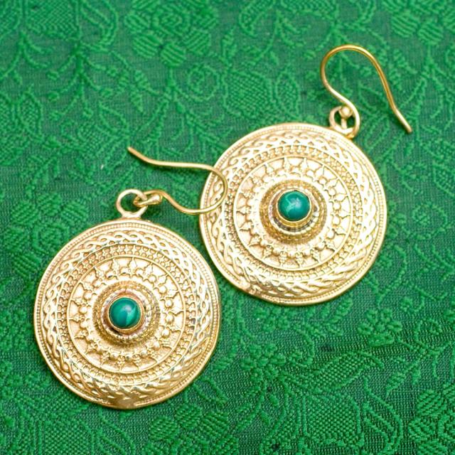 マンダラのゴールデンピアス(パワーストーン付き) / ピアス、エスニック、インド、天然石、アクセサリ、ゴールド、マンダラ、 アクセ 【インドとアジアのアクセサリー