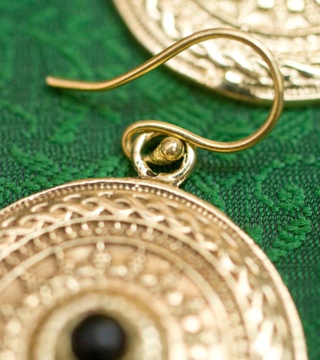 このピアスは古くから文化の交流地点であったデリーで作られている一品です。デリーはインドの首都ですが、千年以上も前からいろいろな旅人を受け入れてきた土地柄です。それ故に彼らの作るデザインの中にはどことなく中東やアラビアンな雰囲気が顔を覗かせ、ただ単純に「インドらしい」だけではない、なだらかに過ぎた時の流れを感じさせるような魅力あります。