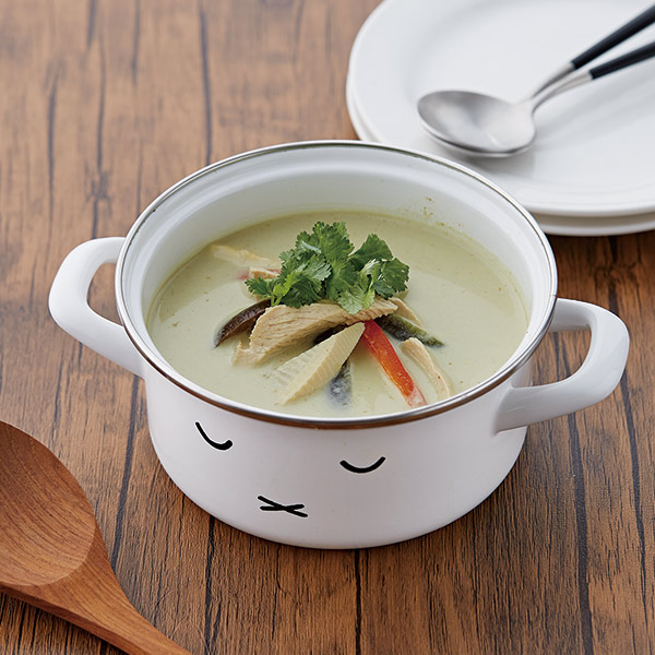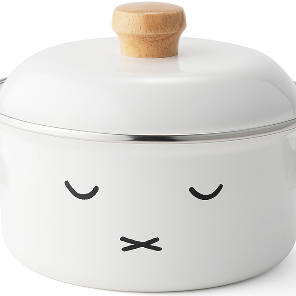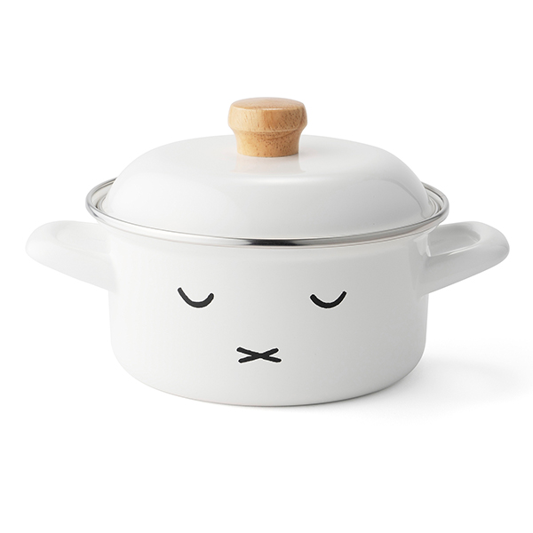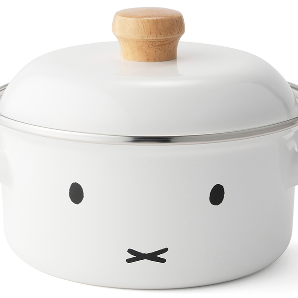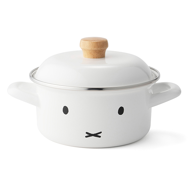 純白のホーローに「ミッフィーのおかお」が可愛い両手鍋です。1〜2人分の少量の調理に適したミニサイズです。IHでもお使いいただけます。