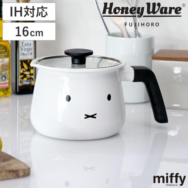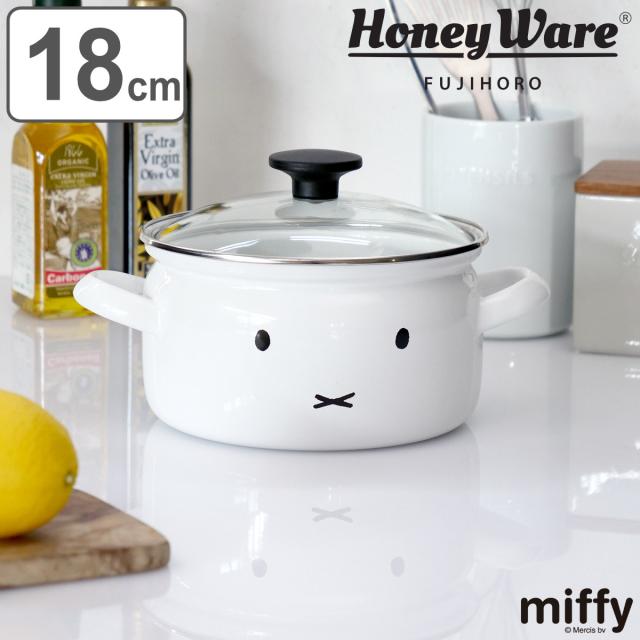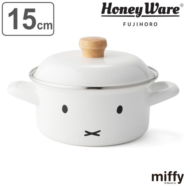 両手鍋 15cm IH対応 富士ホーロー ミッフィーフェイス キャセロール ( HoneyWere ハニーウェア ミッフィー ガス火対応 両手なべ ふた付き 15センチ ホーロー鍋 琺瑯鍋 ほうろう鍋 なべ お鍋 蓋付き 保存用蓋 おしゃれ miffy )