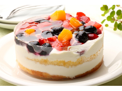 見た目も華やかなケーキです。バニラ風味のカスタード入りホイップとフルーツ(4種のベリー)の 酸味がベストマッチ!