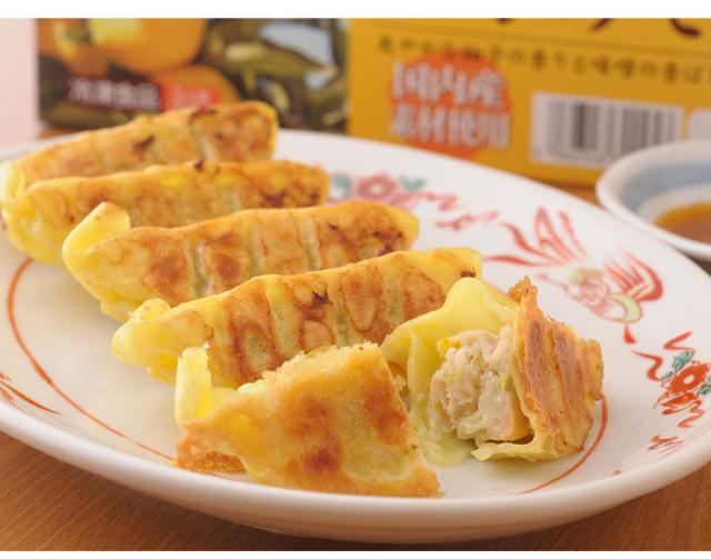 野菜(キャベツ、玉ねぎ、長ねぎ、しょうが)食肉(鶏肉、豚肉)豚脂、ゆず、粒状植物性たん白、ごま油、食塩、砂糖、中華風調味料、香辛料、皮(小麦粉、植物油脂)/加工でん粉、調味料(アミノ酸等)、酒精、クチナシ色素、(一部に小麦・乳成分・ごま・大豆・鶏肉・豚肉を含む)