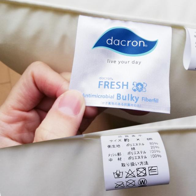 | ダクロン(R) アンチマイクロバイアル ファイバーフィル 中わた使用 ウォッシャブル枕 |