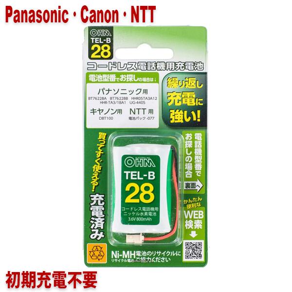 パナソニック・キヤノン・NTT用コードレス電話機 子機用充電池 HHR-TA3/1BA1・DBT100同等品 05-0028 OHM TEL-B28 すぐに使える充電済み 互換電池 メール便送料無料