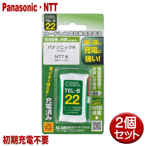 パナソニック・NTT用コードレス電話機 子機用充電池 2個セット KX-FAN37・電池パック-078同等品 05-0022 OHM TEL-B22 すぐに使える充電済み 互換電池 メール便送料無料