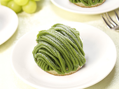 有名なお茶の産地「八女」の抹茶をたっぷり使用したクリーム。中心には栗の甘露煮が。 ゆたかな風味が感じられる、和風モンブランです。