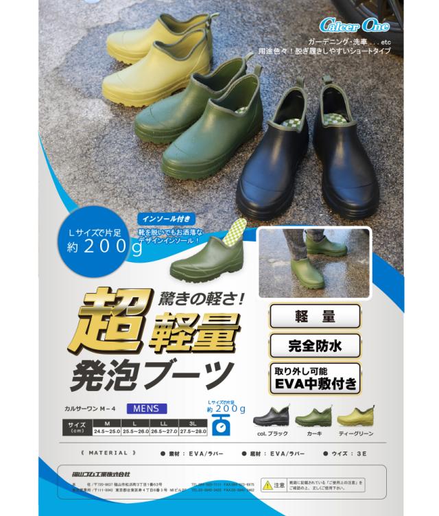 長靴 福山ゴム カルサーワンM-4 AA985 レインブーツ ショートタイプ