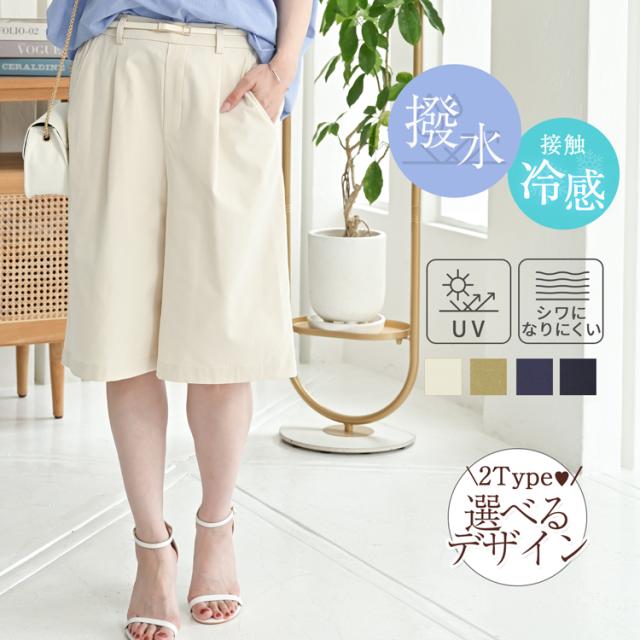 ハーフパンツ レディース ショートパンツ 短パン オフィス カジュアル きれいめ 撥水 パンツ ボトムス 夏 春 uvカット 接触冷感 ウエストゴム ストレッチ ひざ下 ハーフ ロング タック チノパンツ ボトム ズボン 白 黒 涼しい 冷感 半ズボン チノパン