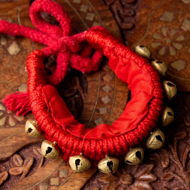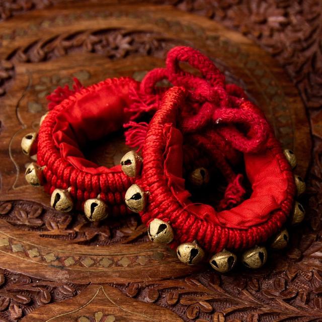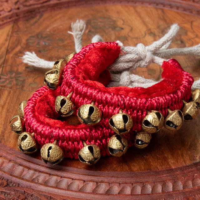 赤紐グングル【両足用-2本セット】 / グングルベルト、ベル、グングル、インド 打楽器、打楽器、民族楽器、インド舞踊、カタック、バラタナティヤム、オリッシー、鈴、ダンス 民族楽器 【インドとアジアン民族楽器