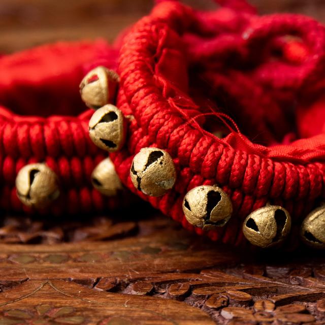赤紐グングル【両足用 2本セット】 / グングルベルト インド 打楽器 民族楽器 銅鑼 ドラ インド楽器 エスニック楽器 ヒーリング楽器