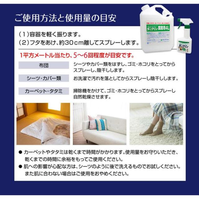 ダニクリンを定期的にお使いいただき、ダニクリン使用中も、ダニのエサや死骸・フンを取り除くために、