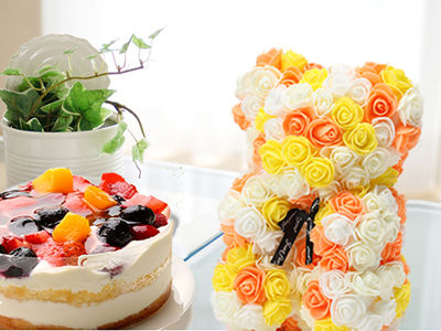 飾って楽しい!食べて美味しい!そんな欲張りなセットです。さて、どなたにプレゼントしましょう? ※ケーキは2種類からお選びください。