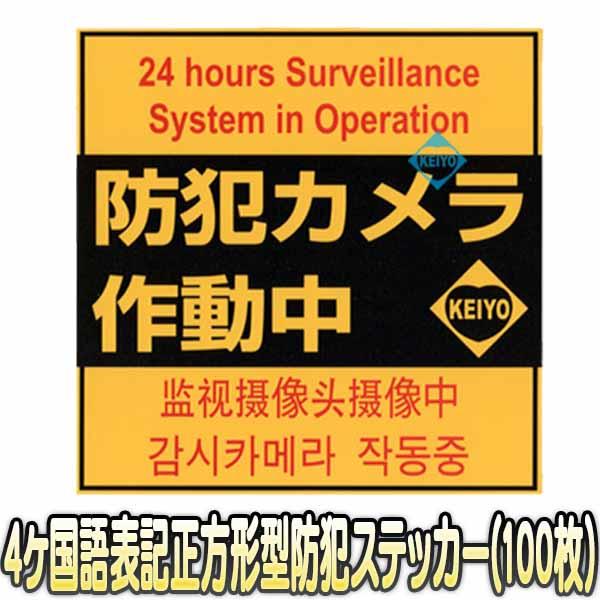 Keiyo-STS100(ケイヨーオリジナルステッカーS100枚セット)【4ヶ国語表示正方形防犯ステッカー】【4ヶ国語対応防犯シール100枚セット】