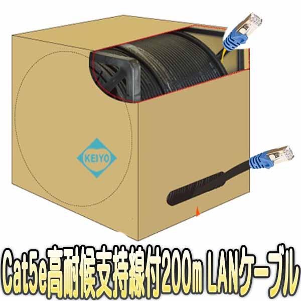 Cat5e-200M(支持線付)【ネットワークカメラ対応カテゴリー5屋外用高耐候支持線付LANケーブル200m】