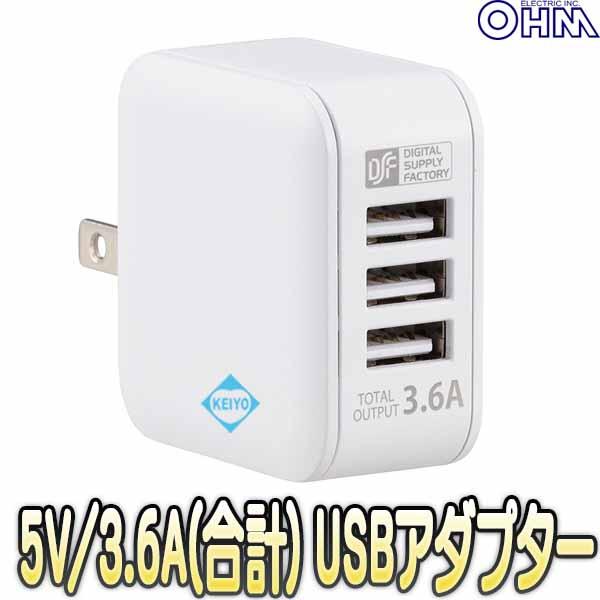 MAV-AU36P3(01-3793)【DC5V/3.6A 3ポートUSB-ACアダプター】 【オーム電機】 【OHM】