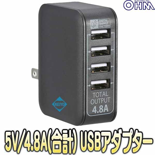 MAV-AU48-K(01-3746)【DC5V/4.8A 4ポートUSB-ACアダプター】 【オーム電機】 【OHM】