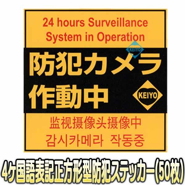 Keiyo-STS50(ケイヨーオリジナルステッカー50枚セット)【4ヶ国語表示正方形防犯ステッカー】【4ヶ国語対応防犯シール50枚セット】