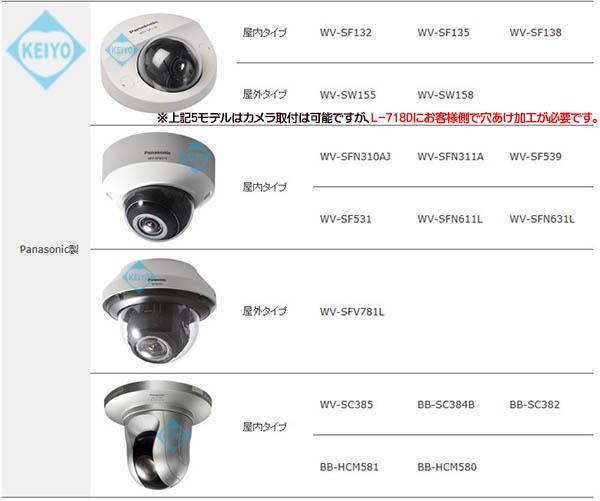 L-718DBは、勾配のある軒下にドームカメラを簡単に水平取付できるブラケットです。 日本製家屋の主な屋根勾配を計算して作られており 3寸/4寸/5寸/6寸勾配で素早く水平角が得られる設計に なっています。 直径約160mmサイズまでのドームカメラの取付の他に 下記、Panasonic製ドームカメラにも適合します。 (※一部モデルを除いて、ネジ留めで簡単に取付可能です) L-718DBには、天井側素材に合わせて本製品を取付るため 軒下取付側ビス類、カメラ取付用のビス・ナット類は 付属しておりませんのでご注意下さい。 L-718DBがあれば、今まで取付を諦めていたような場所でも カメラ設置が可能になります。 ■ L-718DB 対応カメラリスト 直径160mmまでのドーム型カメラの取付に対応