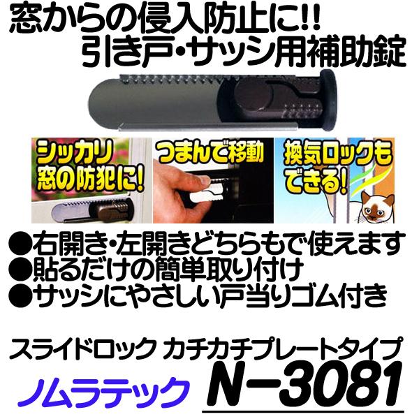 N-3081(スライドロック)カチカチプレートタイプ【引き戸サッシ用補助錠】 【防犯グッズ】 【ノムラテック】【ゆうパケット便対応商品】