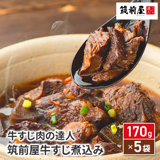 国産 牛すじ専門店 筑前屋 牛すじ 煮込み 170g×5袋 レトルト 常温保存 国産牛使用 湯煎 肉 牛肉 牛スジ