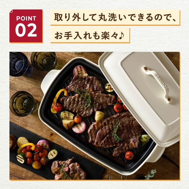 BRUNO(ブルーノ)からホットプレート グランデサイズ用グリルプレートが入荷。お肉や野菜に綺麗な焼き色がつくグリル専用プレートになります。余分な脂を落とし、ヘルシーにお料理を楽しめます。アルミダイキャストを素材に使用し、汚れが良く落ち、洗いやすくなっています。