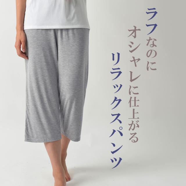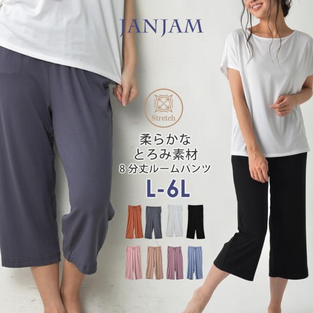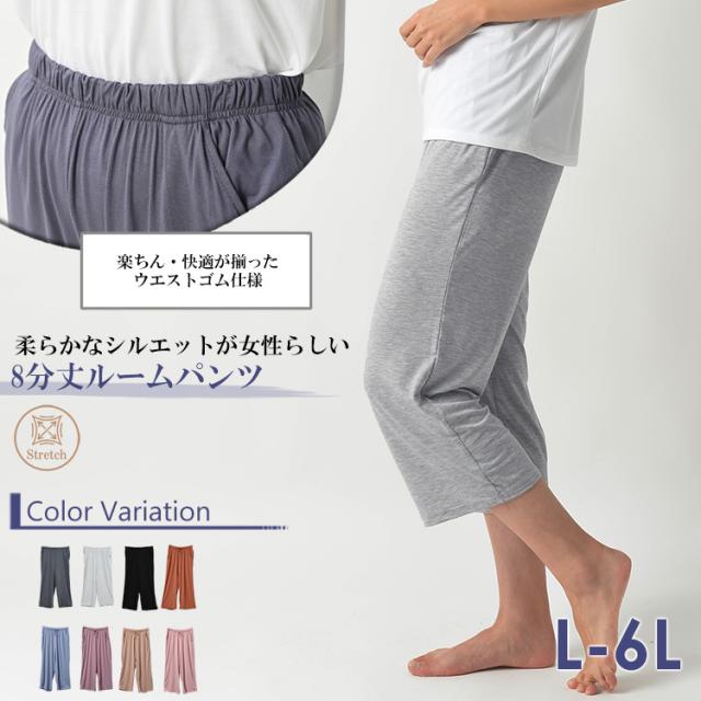 大きいサイズ レディース ボトムス リラックスパンツ クロップドパンツ 8分丈 ウエストゴム ルームウェア メール便対応