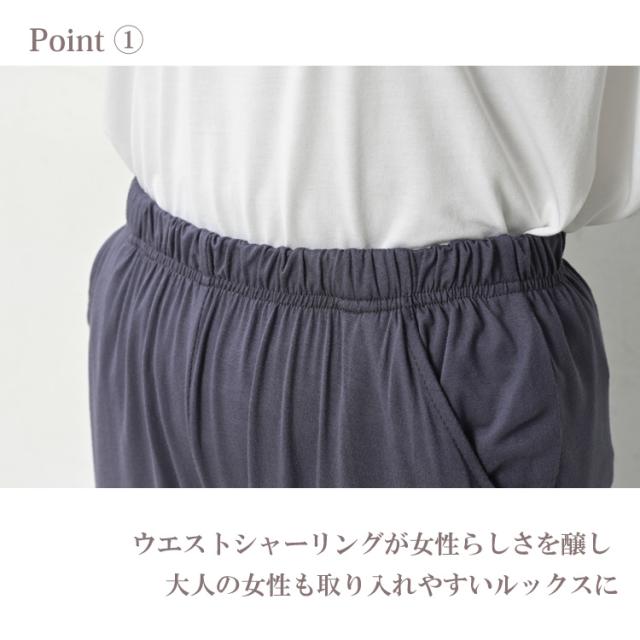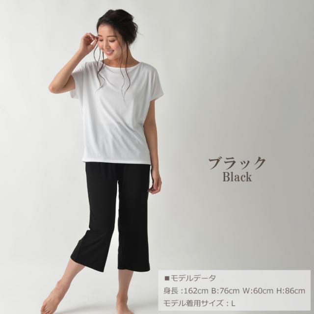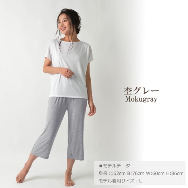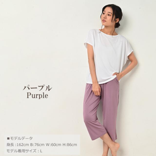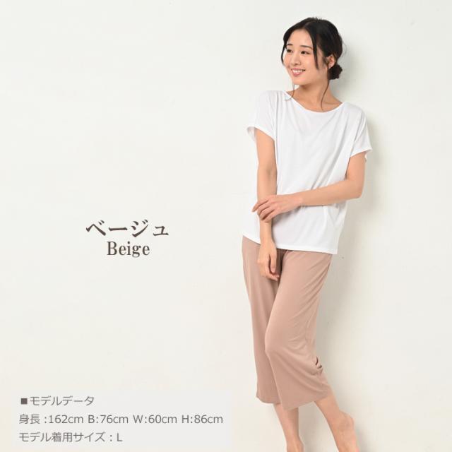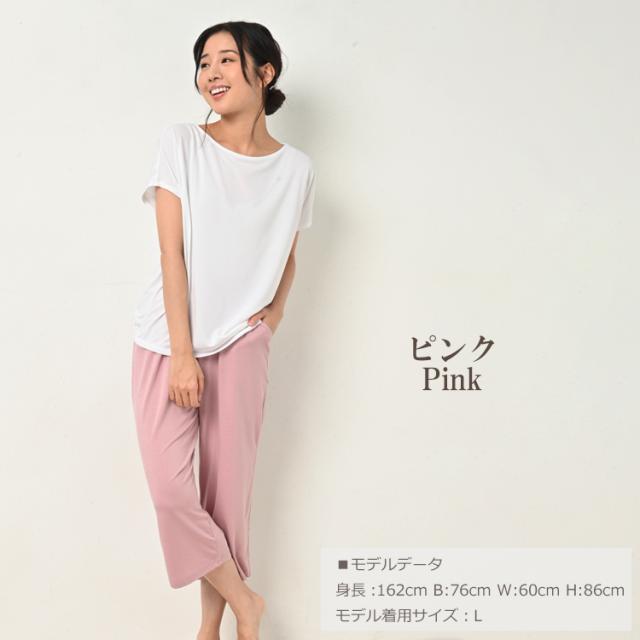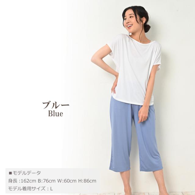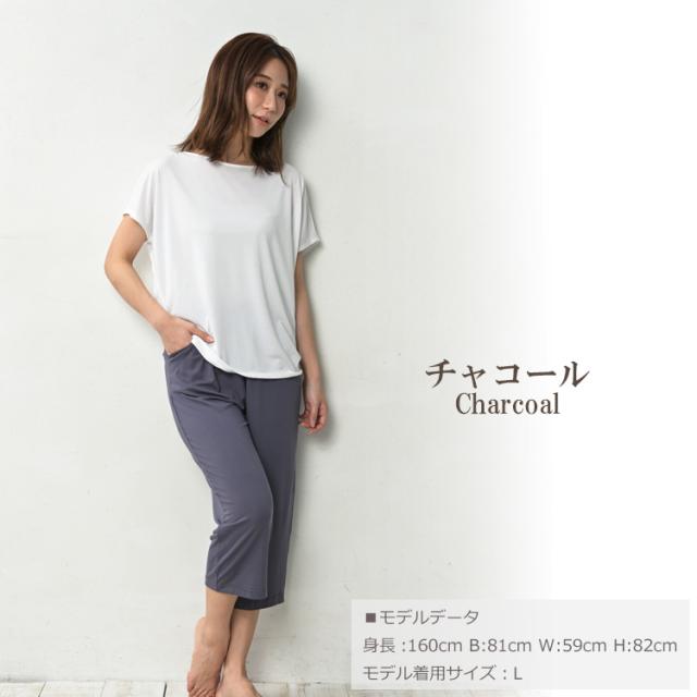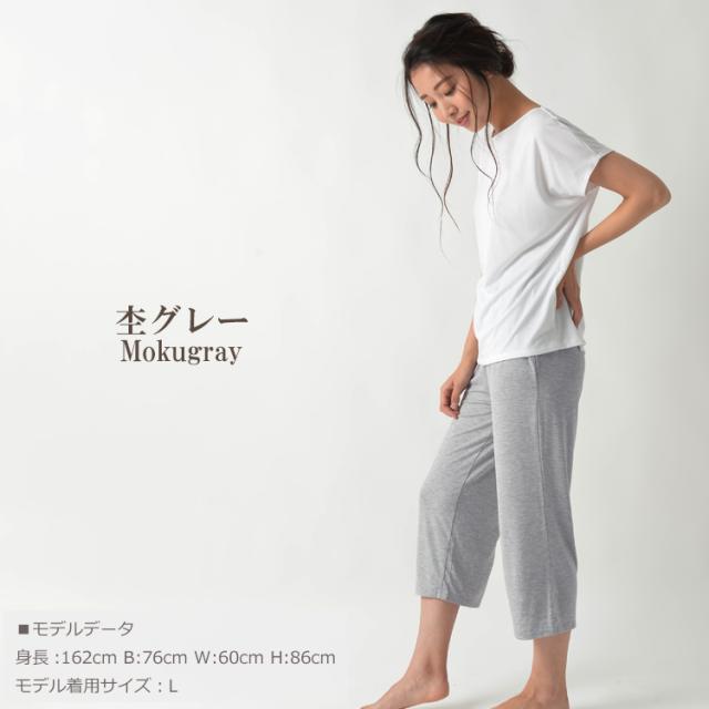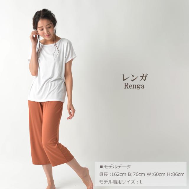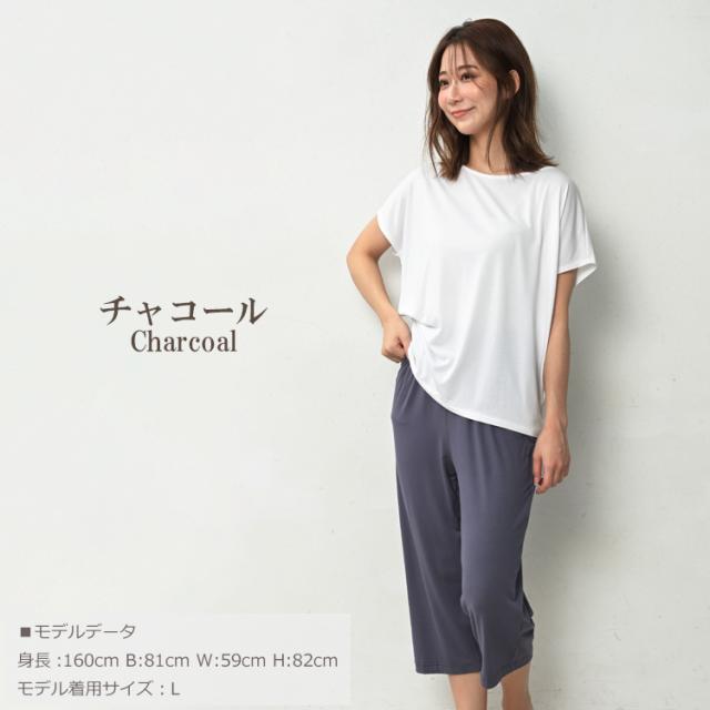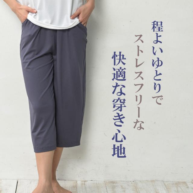 くつろげる着心地とウエストゴムが楽ちん。 柔らかなシルエットが女性らしい 8分丈リラックスパンツ。 程よいゆったりとしたシルエットで ストレスフリーな穿き心地に。 ベーシックでリラックスムード漂うルームパンツです。 |