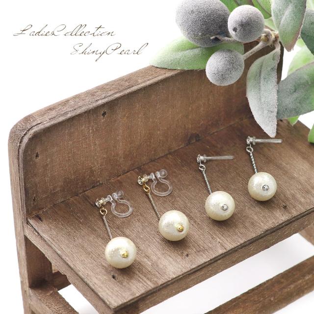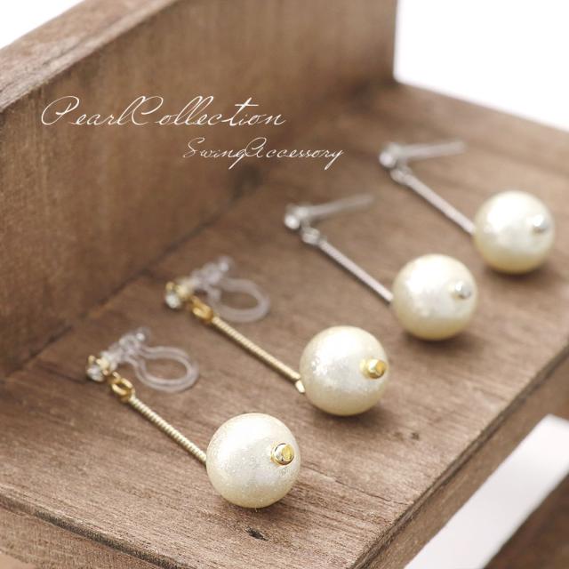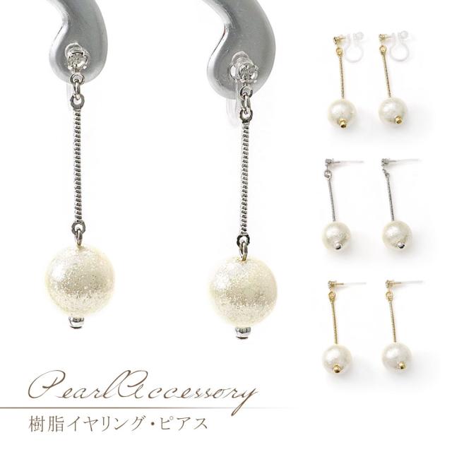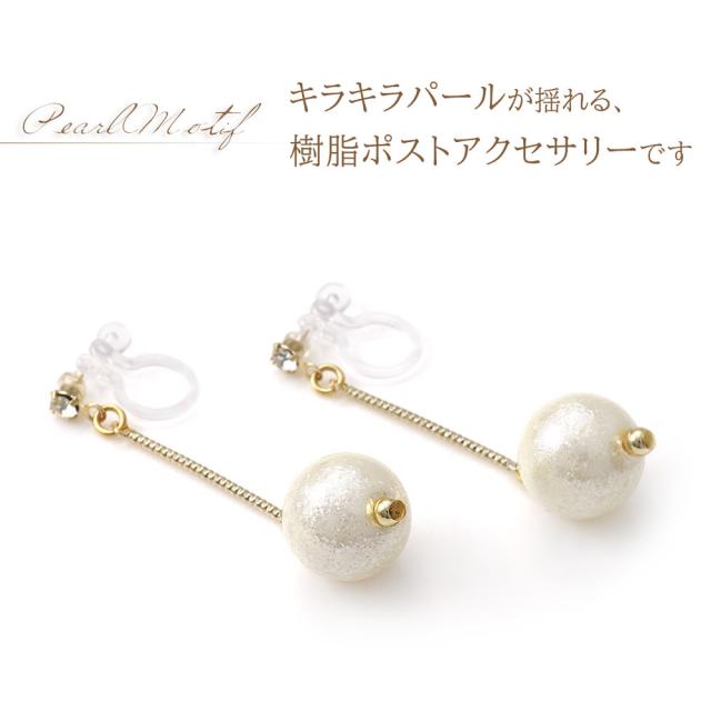 キラキラパールが揺れる、樹脂イヤリング/樹脂ポストピアスです!