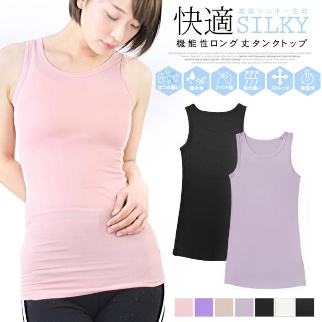 タンクトップ ロング丈 ベーシック インナー レディース 機能性 快適 ストレッチ ムレない 伸びる シンプル 無地 リブ地 下着 肌着 ノースリーブ トップス 着回し デイリー ジム フィットネス ヨガ ホットヨガ 保温 送料無料 (psy028)