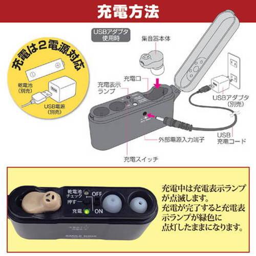 ●耳にすっぽりおさまるので目立ちません●メガネやマスクをかけていても使えます●アルカリ乾電池でもUSB電源でも充電できる