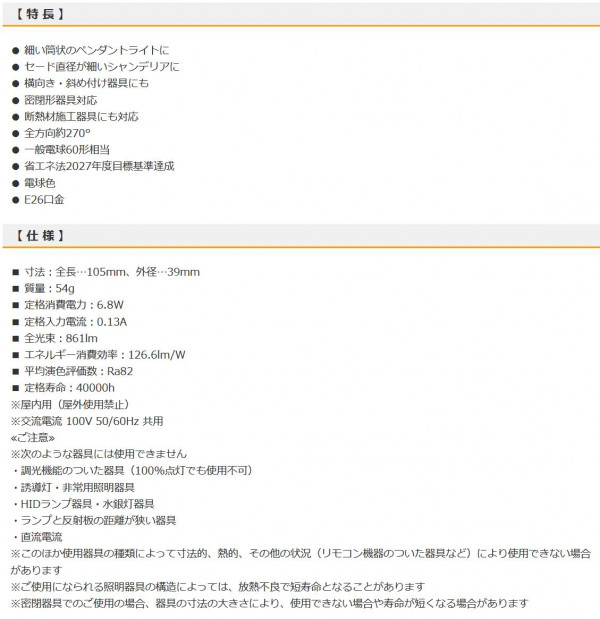 | ペンダントライトや、セード直径が細いシャンデリアなどにオススメです。 |