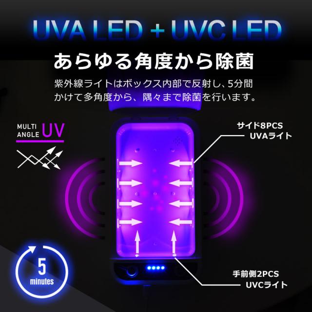 除菌ボックス 99%除菌 360°UV除菌 簡単 スマホ アクセサリー マスク 時計 清潔 安心 滅菌 予防 除菌ケース スマート除菌BOX ホワイト 白 ウイルス 感染予防 新型 除菌 紫外線 アロマ UV 対策 レディース メンズ ◇50%OFF◇