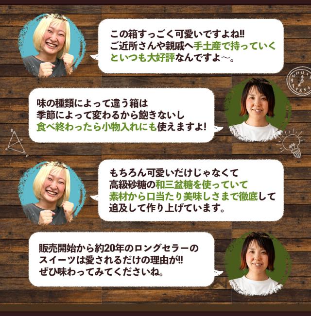 - プチギフトを探しておりましたら、こちらを見つけ購入しました。 注文から約1週間くらいで納品されました。 箱がかわいいし、美味しいと喜んでもらえました。 ありがとうございました。