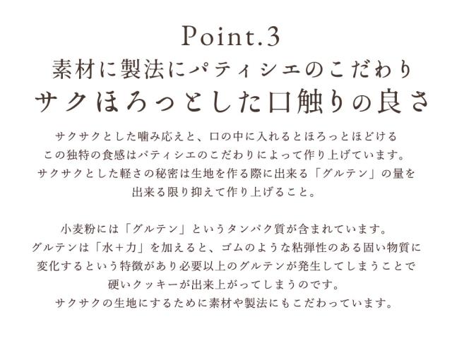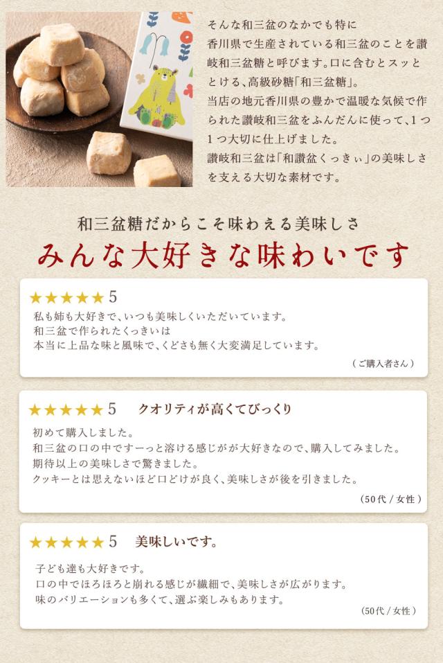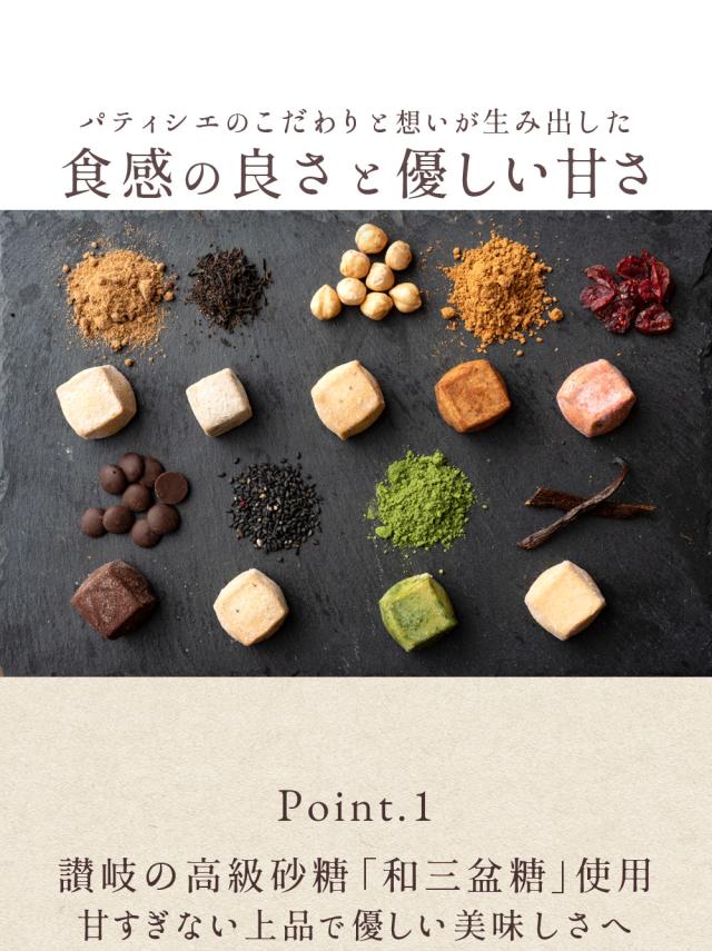 パティシエ特製のさくホロ食感が美味しい、高級砂糖 讃岐和三盆糖を使用した贅沢な美味しさ。