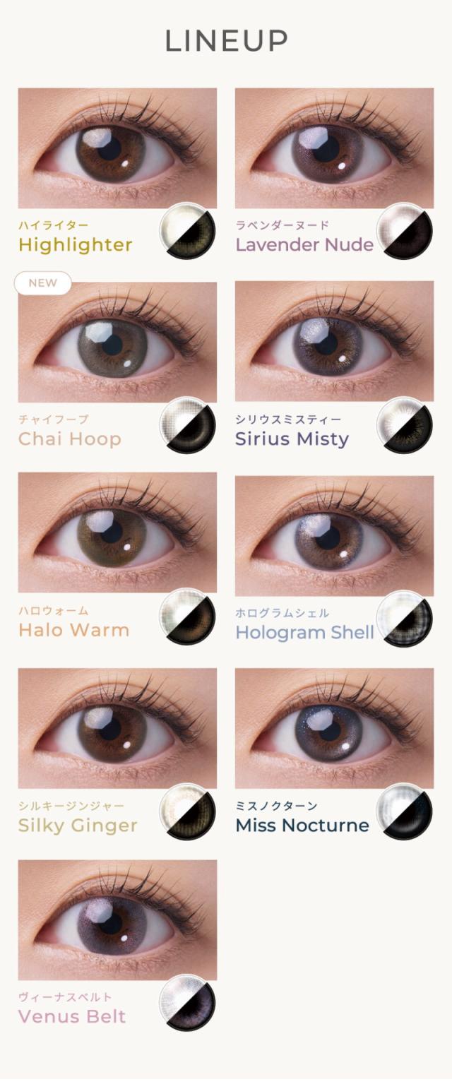 ・カラー展開:チャイフープ ハロウォーム ミスノクターン ハイライター シリウスミスティー ホログラムシェル シルキージンジャー ラベンダーヌード ヴィーナスベルト