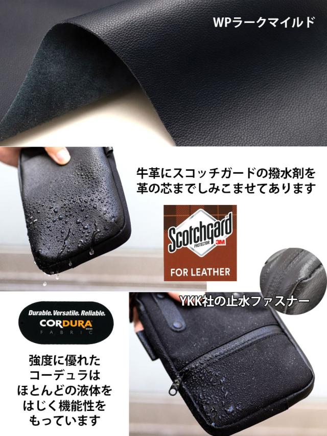 ●それぞれの素材は撥水・止水の効力がありますが完全防水ではありません(内生地・ショルダーベルト等は撥水ではありません)
