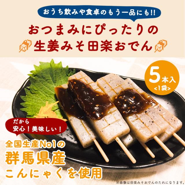 電子レンジで温めるだけ、簡単調理で手軽に食べられる田楽生姜おでん5本入です。付属の生姜味噌タレをかけてお召し上がり下さい。