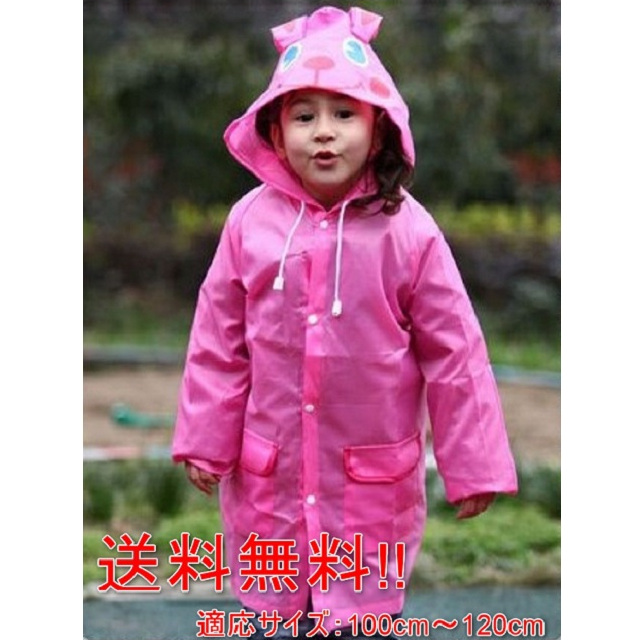 LAZA 子供 レインコート 100cm ~ 120cm 桃色の うさぎ