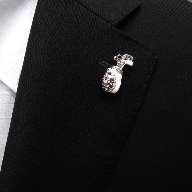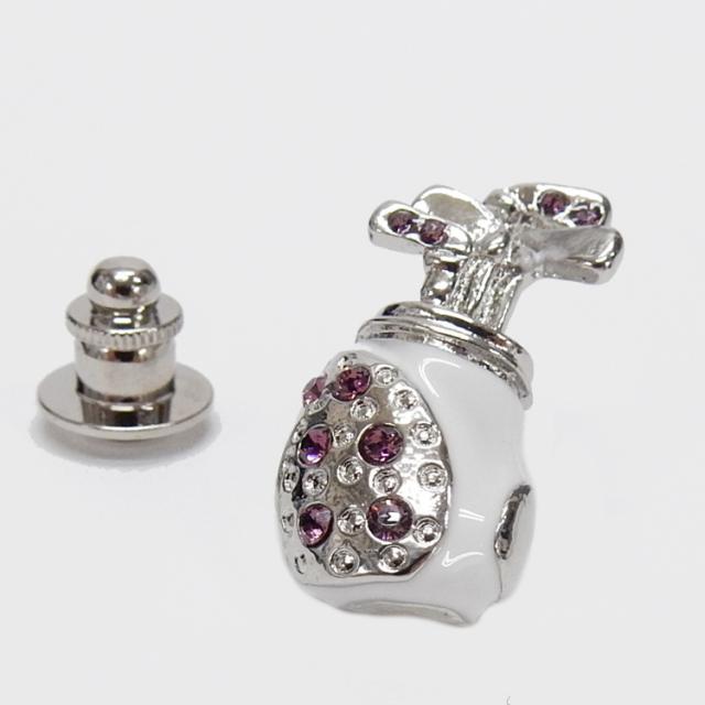 ラペルピン スワロフスキー ゴルフバッグ 銀×白 ブローチ メール便可 ACC21-2501WM