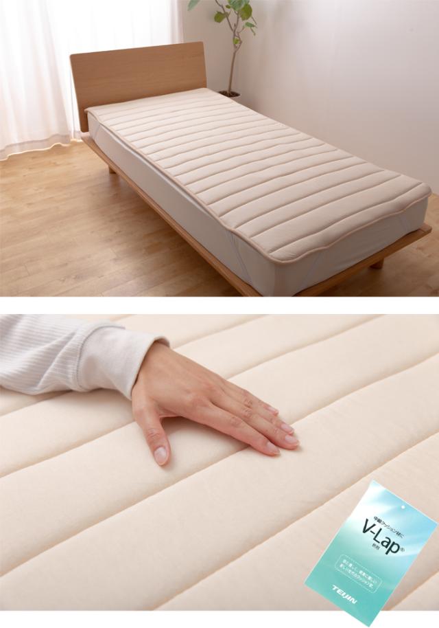 送料無料 テイジン V-Lap ワイドキング 綿100% 無地 敷きパット 敷きパッド 体圧分散 高通気性 ニットベッドパット 200×200cm SSS0024T