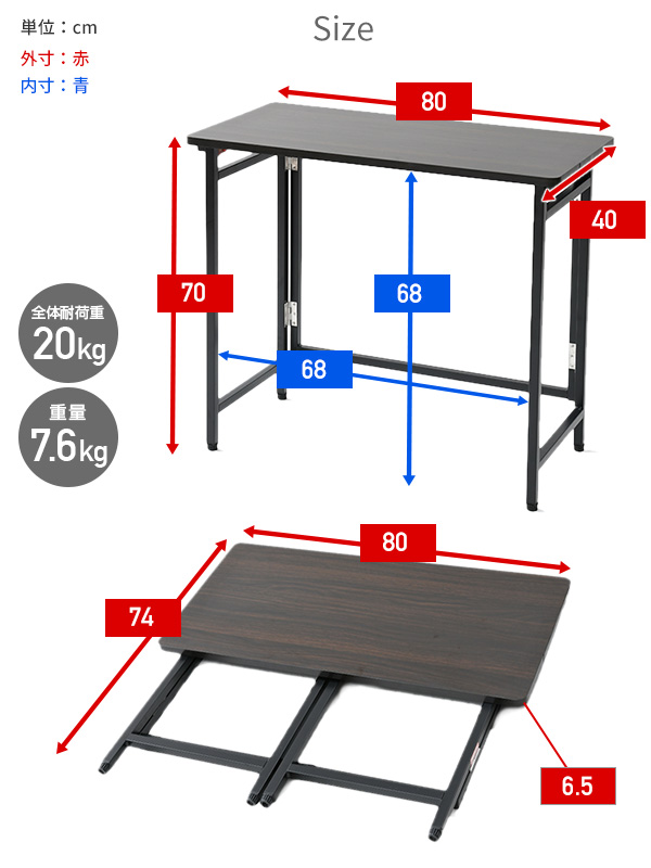 | 本体サイズ | ●本体サイズ 幅80×奥行40×高さ70cm 重量7.6kg ●折りたたみサイズ 幅80×奥行74×高さ6.5cm |