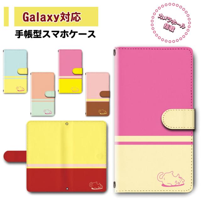 スマホ ケース カバー 手帳型 Galaxy SC-41A SCV48 SC-52A SCG02 ギャラクシー 送料無料 動物 猫 ネコ cat ツートン バイカラー シンプル / dc-483
