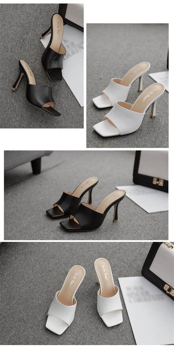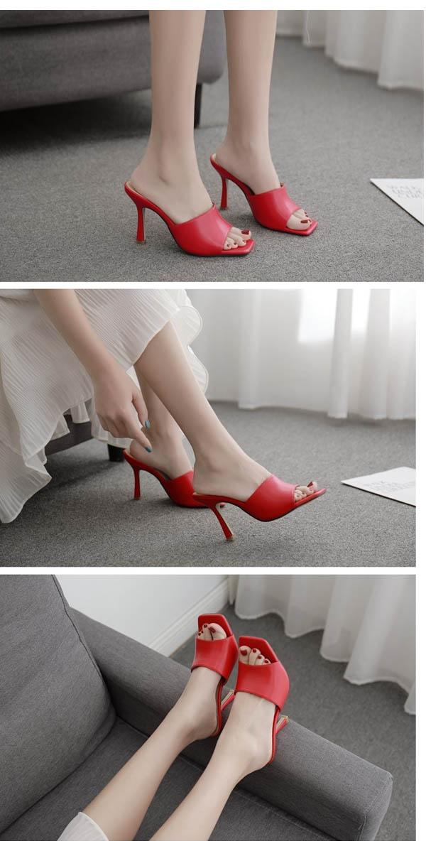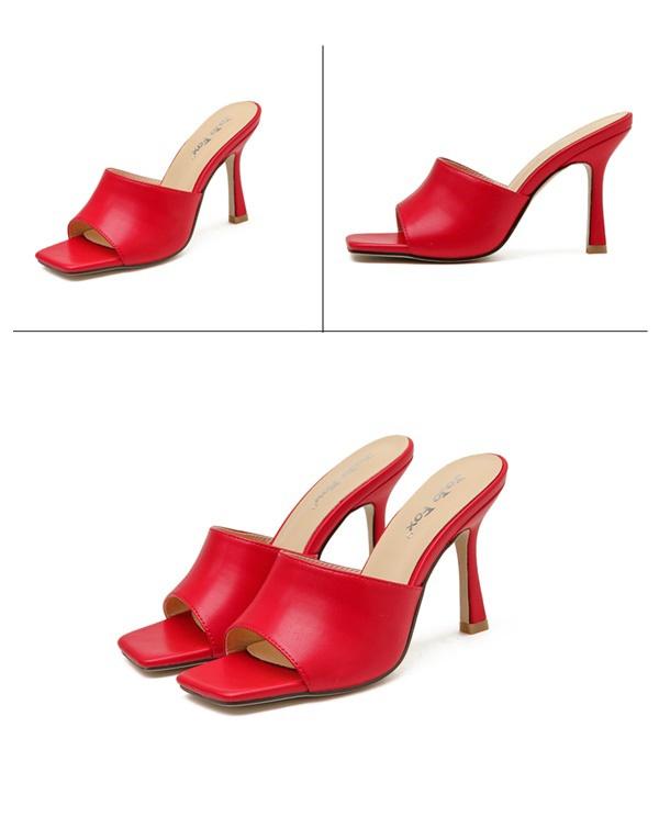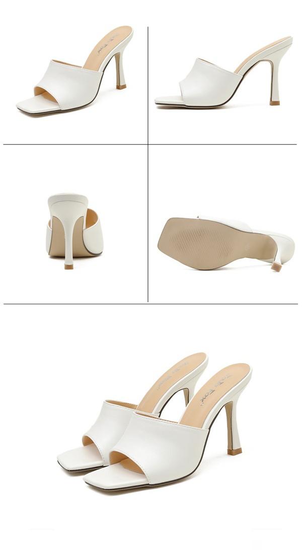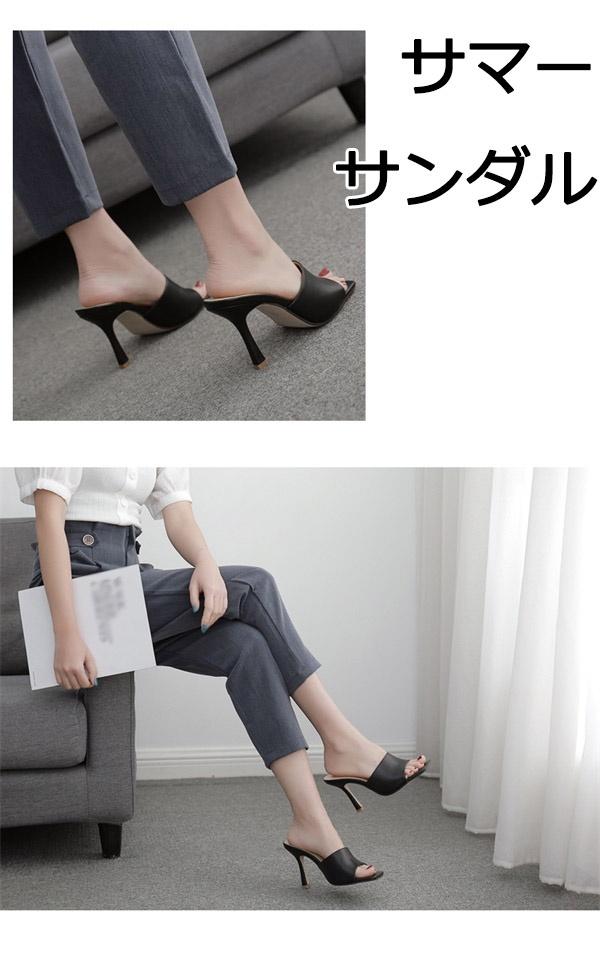 ミュール サンダル スクエアトゥ 美脚 ハイヒール シューズ オープントゥ 靴 ピンヒール レディース 女性 大人かわいい 夏 オシャレ ブラック ホワイト レッド ブルー