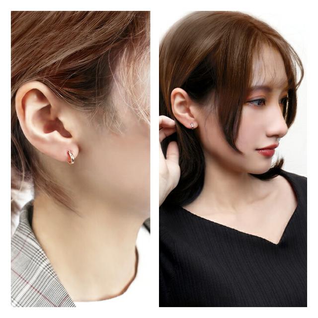【close to me】 天然ダイヤモンド シンプル フープ ペアピアス (片耳用)