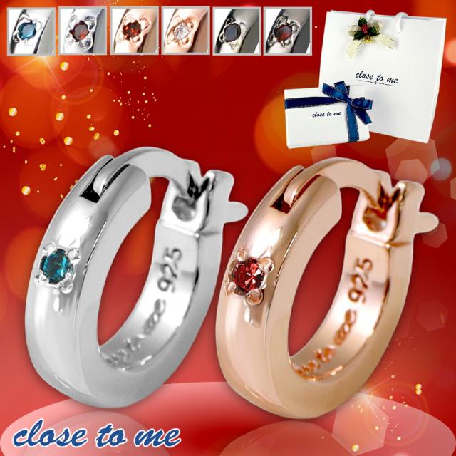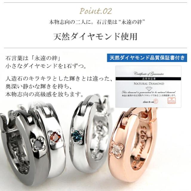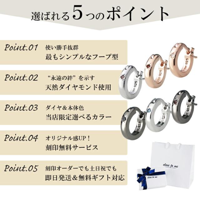 刻印無料 当店限定 選べる ダイヤモンド シンプル フープ ペアピアス (片耳用) シルバー925 ペアアクセサリー ペア フープピアス