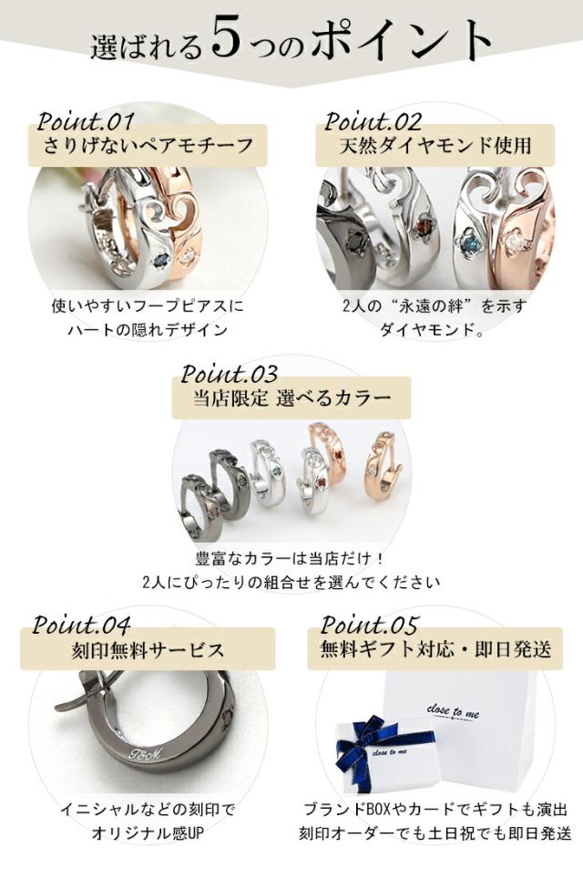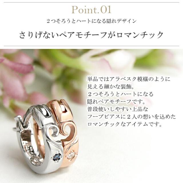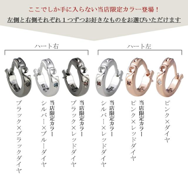 刻印無料 当店限定 選べる ダイヤモンド アラベスク ハート ペアピアス (片耳用) シルバー925 ペアアクセサリー ペア フープピアス