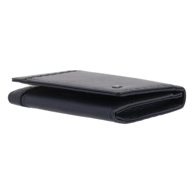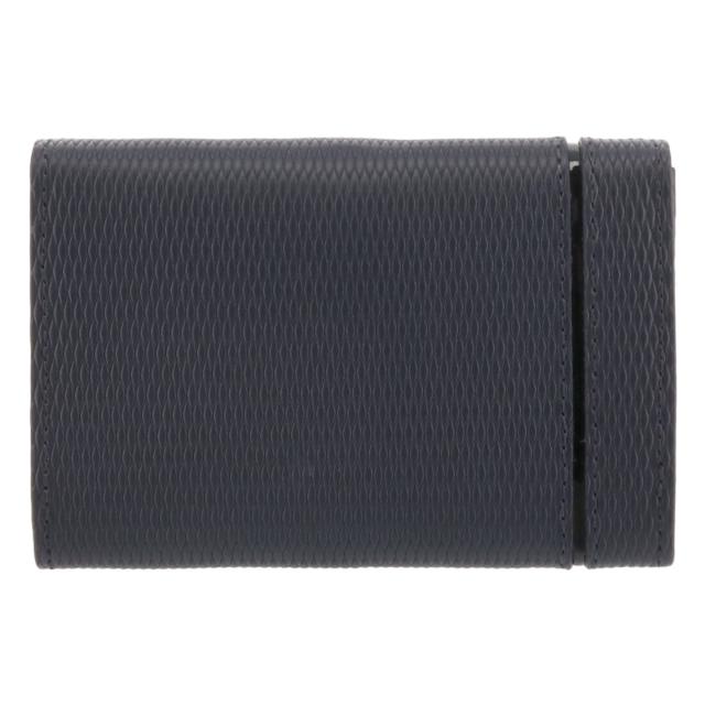 良質なレザーにエンボス加工を施しました。光沢のあるガラスレザーをライン状に切り替えをしたデザインで、ランバンコレクションらしいシャープな仕上がりとなっています。シンプルで機能性も兼ね備えた名刺入れでギフトにもおすすめです。表のメタルのロゴマークがさりげないポイントになっています。